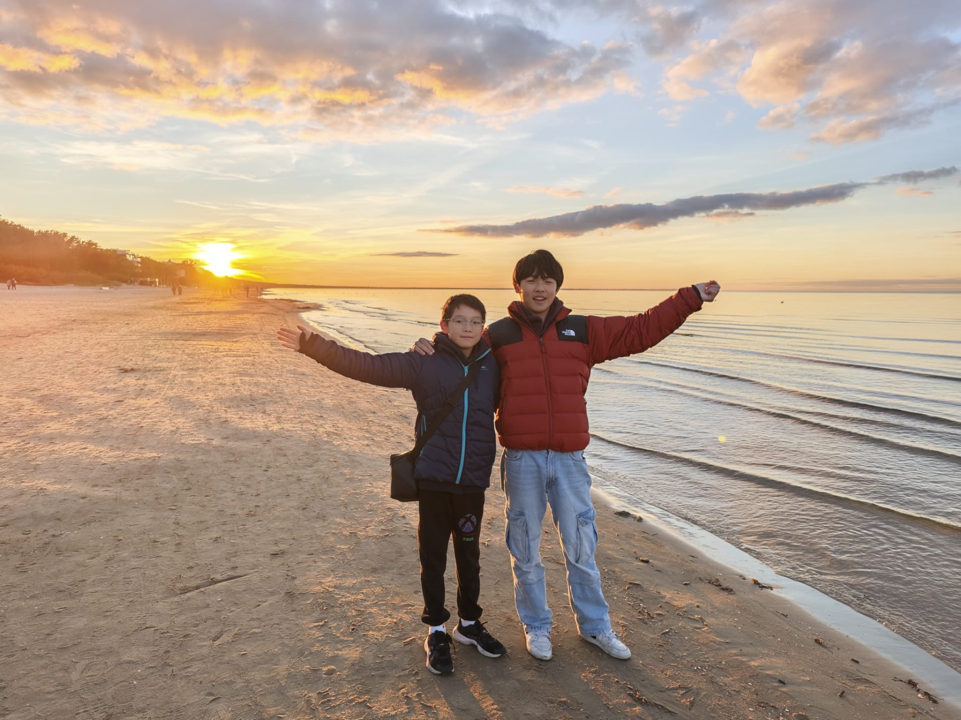 kwamen precies op tijd voor de zonsondergang. Het strand was tot mijn